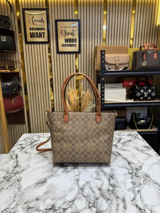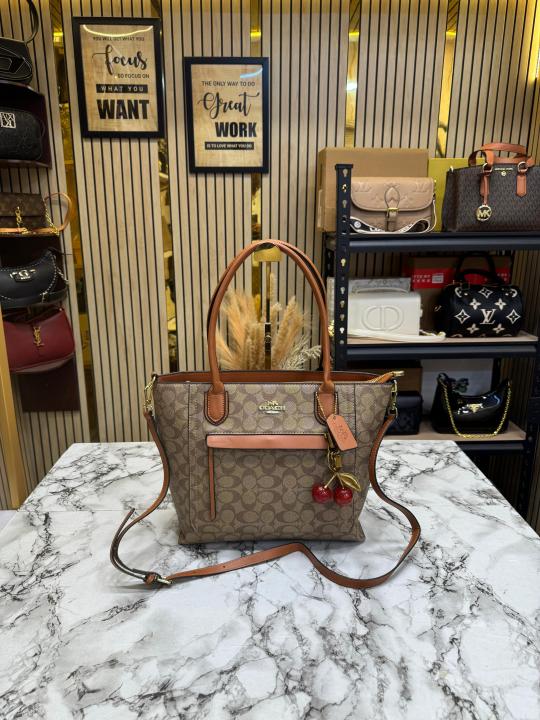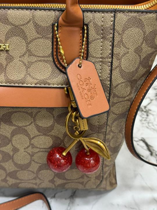 Coac_h Signature Monogram Tote Bag With Cherry Charm (Brown) (6369)