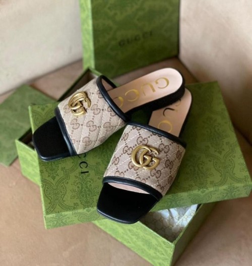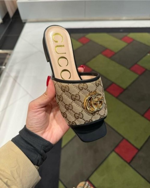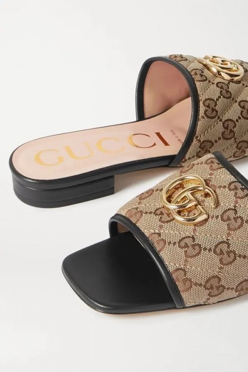 Home Sandals/Chappal Gucci Jolie Matelasse Black Canvas Leather Slides For Women With Original Box And DustCover