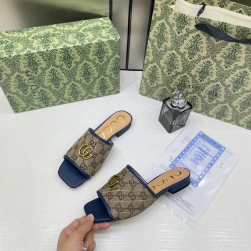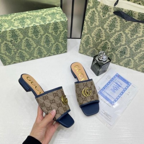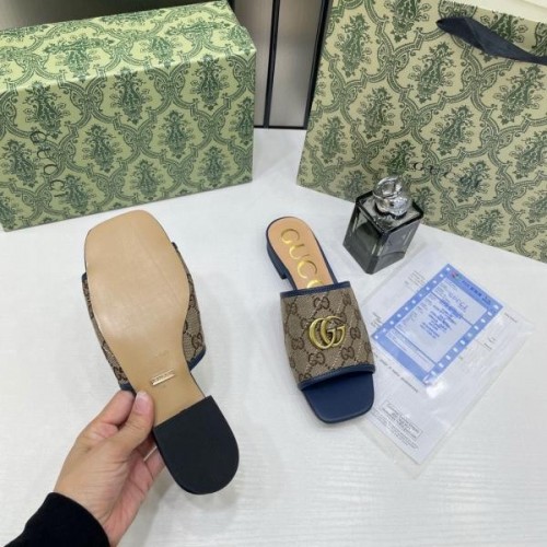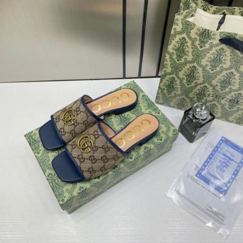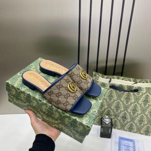 Home Sandals/Chappal Gucci Jolie Matelasse Blue Canvas Leather Slides For Women With Original Box And DustCover
