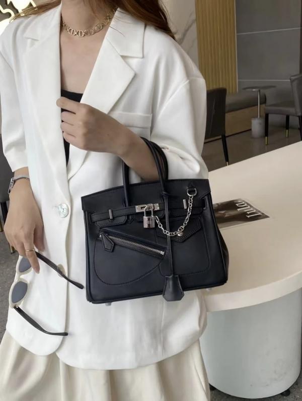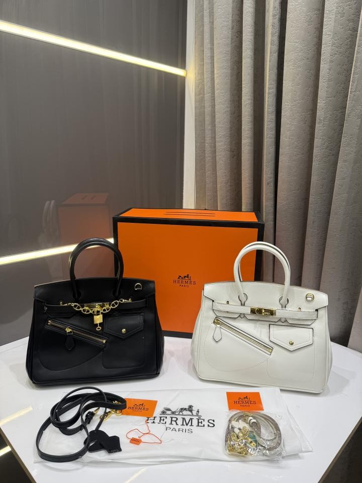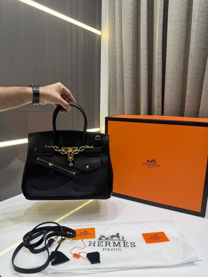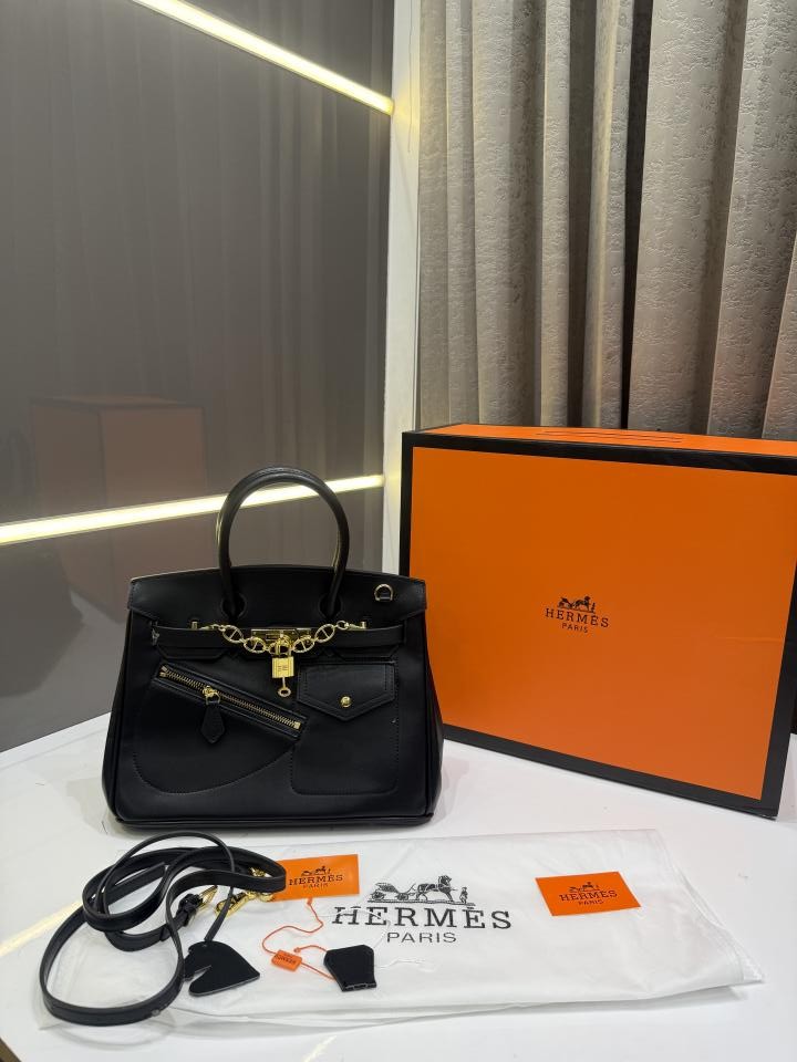 HERME.S BLACK BIRKIN 25 EXTERNAL POCKET UNIQ ZIP PREMIUM WITH. OG MAGNETIC BOX