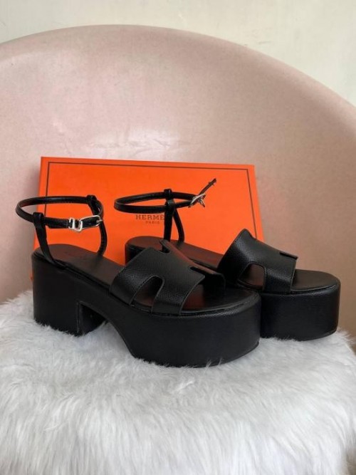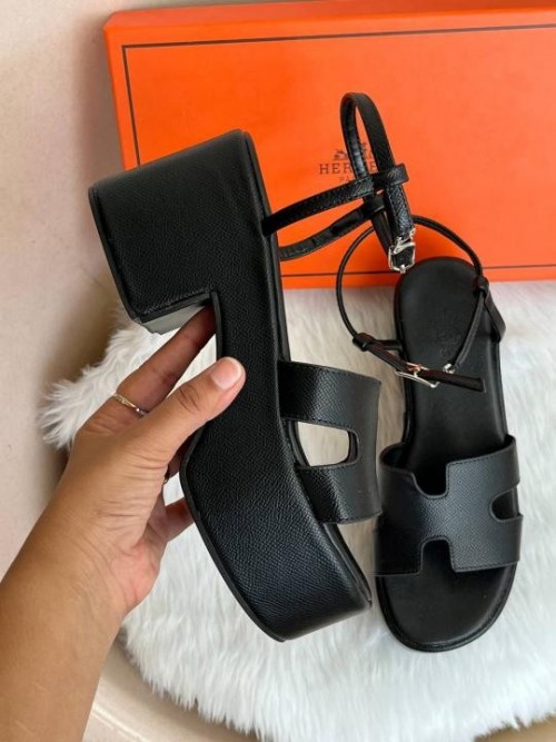 Hermes Jam 30 Black Platform Sandal With Original Box